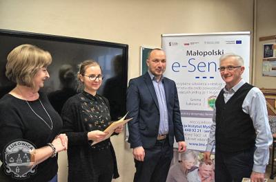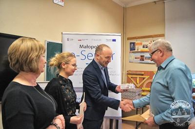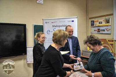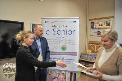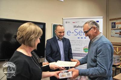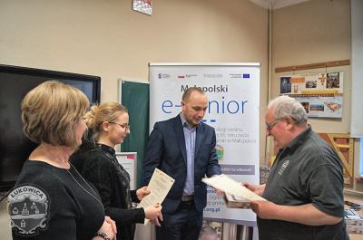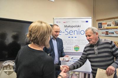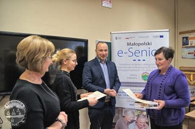 Na ostatnich zajęciach przedstawiciel Fundacji Instytutu Myśli Innowacyjnej oraz Wójt Gminy Łukowica przekazali uczestnikom zaświadczenia oraz tablety. Gratulacje Seniorom złożyła również Dyrektor Szkoły Podstawowej w Stroniu.