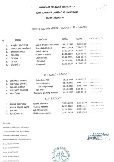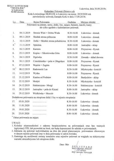 Kalendarz polowań 2019/2020 22.10.2019 13:33 Treść Urząd Gminy w Łukowicy otrzymał kalendarze polowań od Koła Łowieckiego „SKIEŁEK” w Łukowicy oraz Koła Łowieckiego „OSTRA” w Limanowej. Email Drukuj