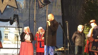 Dzięki zaproszeniu Krakowskiej Kongregacji Kupieckiej 1 grudnia br. podczas Jarmarku Bożonarodzeniowego Zespół Regionalny Przyszowianie, Grupa Śpiewacza oraz Panie z KGW Przyszowa mogli zaprezentować muzykę, tańce, obrzędy i smaki Gminy Łukowica. Wszystkich przybyłych gość, mieszkańców i turystów zgromadzonych na Rynku Głównym w Krakowie powitał Wójt Gminy Łukowica Bogdan Łuczkowski.