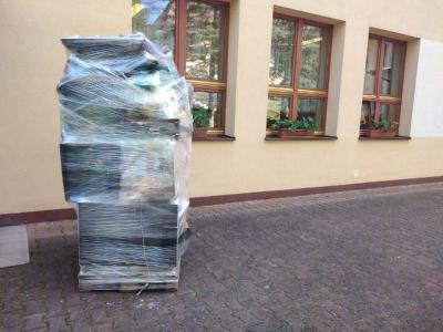 Dnia 10.05.2021 Firma Green Office Ecologic podjechała do szkoły autem firmowym i zabrała odpady do recyklingu.