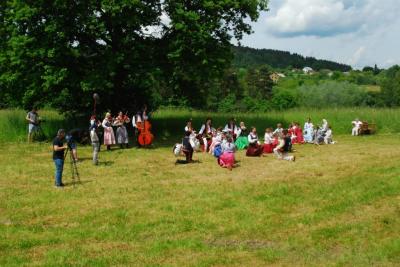 Dosłownie przed chwilą zakończyły się zdjęcia zespołu Dolina Słomki – od 9-tej rano – do filmu, który kręciła ekipa MCK Sokół z Nowego Sącza na Święto Dzieci Gór. Wielki szacunek i podziękowania zwłaszcza dla dzieci, które dzielnie wytrzymały w upale i na słońcu.