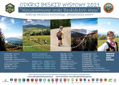 XII edycja akcji ODKRYJ BESKID WYSPOWY 2021. Niezapomniane Uroki Beskidzkich Wysp. KORONA BESKIDU WYSPOWEGO „BESKIDZKIE WYSPY”. Organizator: Forum Gmin Beskidu Wyspowego Z uwagi na epidemię koronawirusa uczestnicy wędrują indywidualnie.