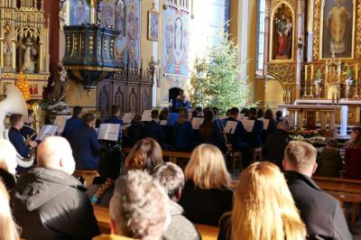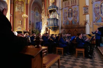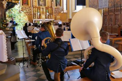 Koncert Echo Gminy Łukowica przed Mszą św. przedpołudniową w Przyszowej.