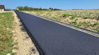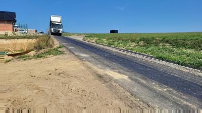 Zostały ułożone korytka, dzisiaj został położony asfalt, a następnie zostaną usypane pobocza wraz z nakropką.