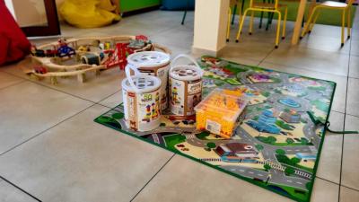 - wyposażenie kącika zabaw dla dzieci w zabawki, gry, puzzle i książki