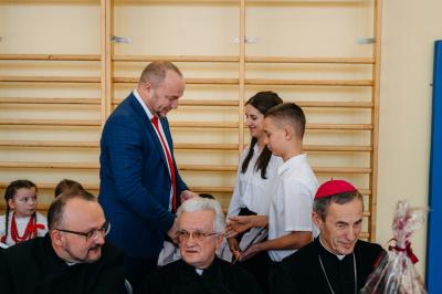 Obchody rozpoczęły się uroczystą mszą świętą pod przewodnictwem księdza biskupa Stanisława Salaterskiego. Liturgię uświetniła oprawa muzyczna przygotowana przez szkolną scholę, grono pedagogiczne oraz rodziców.