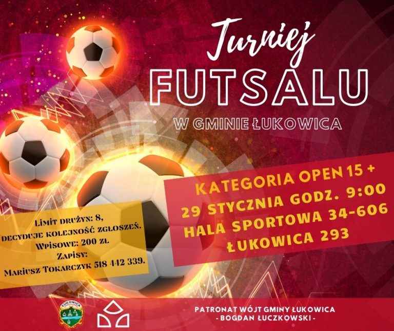 29 stycznia o godz. 9:00 na hali sportowej w Łukowicy odbędzie się Turniej Futsalu w kategorii OPEN 15+.