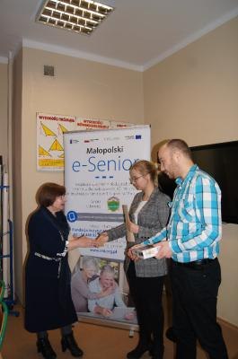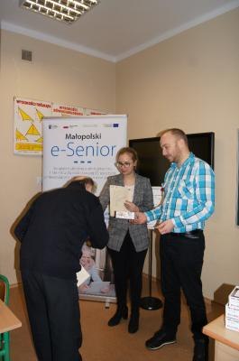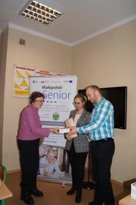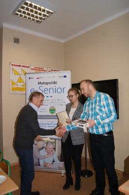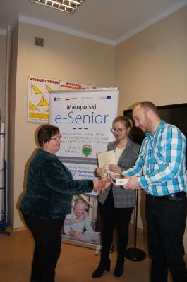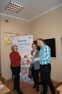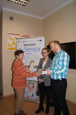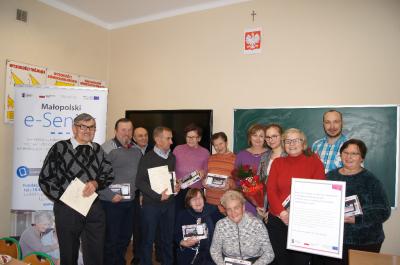 Na ostatnich zajęciach przedstawiciel Fundacji Instytutu Myśli Innowacyjnej oraz Wójt Gminy Łukowica przekazali uczestnikom zaświadczenia oraz tablety. Gratulacje Seniorom złożyła również Dyrektor Szkoły Podstawowej w Stroniu.