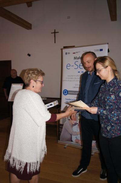 Kolejni seniorzy z terenu Naszej Gminy ukończyli szkolenie w ramach projektu "Małopolski e-senior". Na ostatnich zajęciach uczestnicy otrzymali tablety na których pracowali podczas projektu, Dzięki współpracy z Fundacją Instytut Myśli Innowacyjnej Nasi Seniorzy poznali m.in. podstawy obsługi edytora tekstu, arkusza kalkulacyjnego, Internetu czy serwisu społecznościowego.