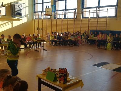 Finał akcji „Odblaskowa Szkoła” zakończył się happeningiem Szkole Podstawowej nr 2, który polegał m.in. innymi na wykonaniu przez każdą klasę odblaskowych kanapek. W tym dniu w szkole zagościli Panowie policjanci, szanowne grono seniorów oraz odblaskowi uczniowie. Podczas wspólnej zabawy, przeprowadzono pogadankę na temat bezpieczeństwa na drodze, odblaskowy pokaz mody, degustacje odblaskowych kanapek, wręczenie nagród przez policjantów dla zwycięzców przeprowadzonych wcześniej konkursów. Zaproszeni seniorzy, również otrzymali opaski odblaskowe, oraz oceniali kulinarne popisy uczniów. Ostatnim punktem programu był pokaz radiowozu policyjnego. Wszyscy chętni uczniowie mogli wsiąść do samochodu i założyć policyjną czapkę.